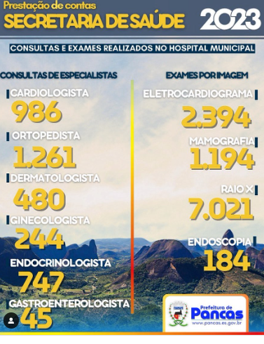 A Secretaria de Saúde de Pancas apresentou os resultados obtidos ao longo do ano de 2023, refletindo o comprometimento constante com a promoção da saúde e bem-estar da comunidade local.