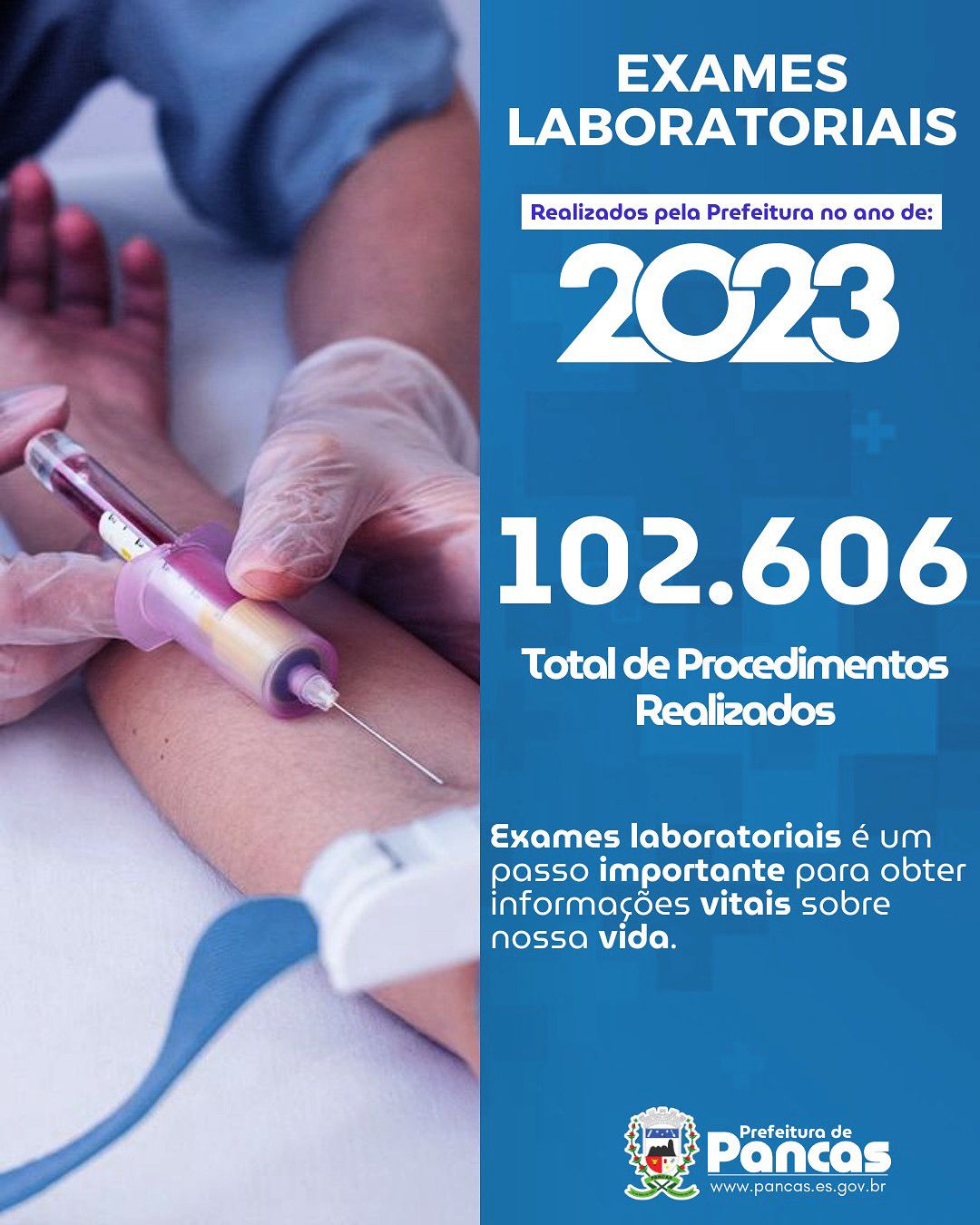 A realização de 102.606 procedimentos laboratoriais pela Prefeitura, também foi um dos pontos altos apresentados, destacando a importância dos exames para diagnósticos precisos e a continuidade do cuidado com a saúde da população do município.