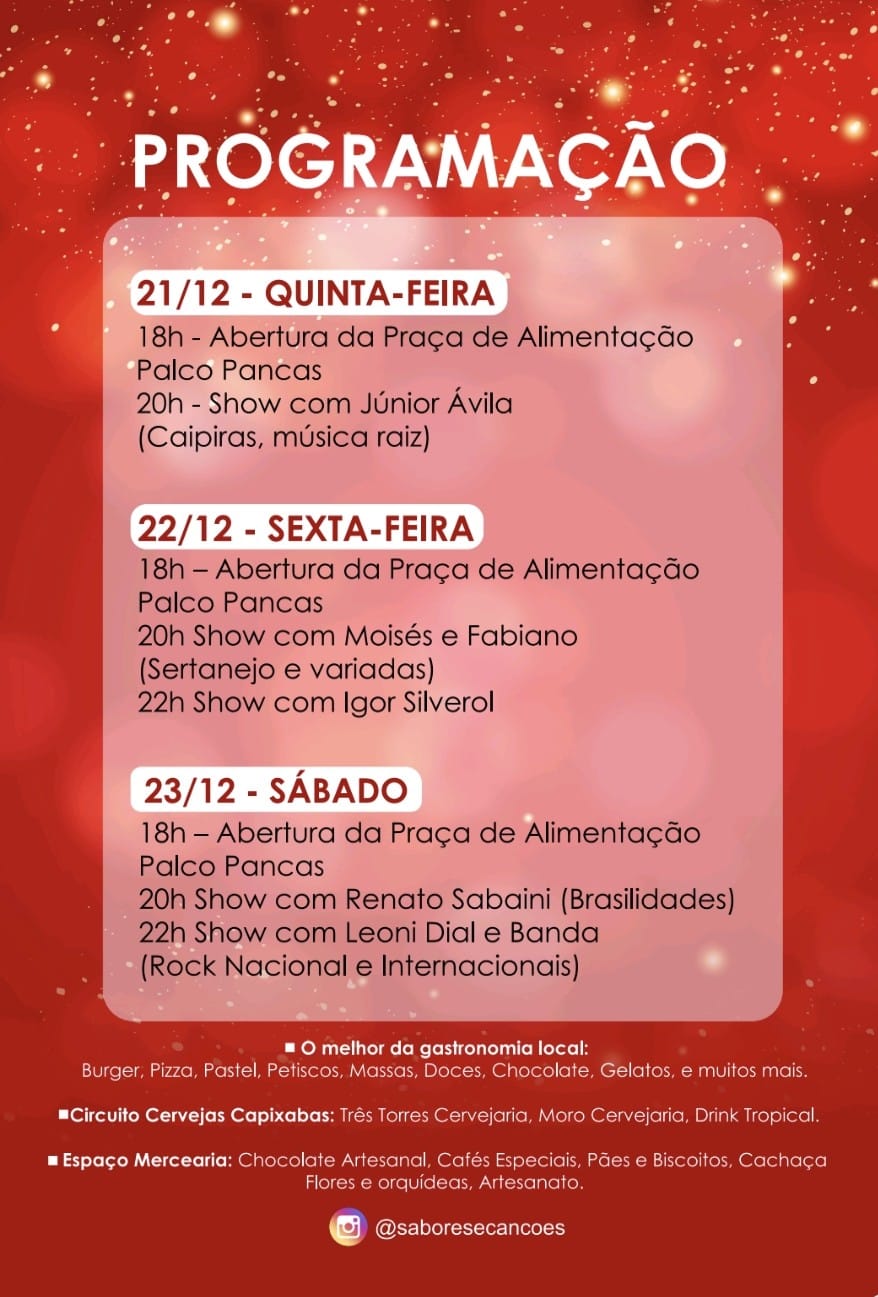 Jefferson Scardini, Secretário de Turismo, Cultura, Esporte e Lazer, expressou seu entusiasmo ao enfatizar a singularidade do Festival Gastronômico Pancas – Sabores & Canções Especial NATAL para a cidade como uma nova identidade gastronômica e convida a cada residente de Pancas e das cidades vizinhas para participarem desses dias de festividade, sabores e música na cidade Poesia.