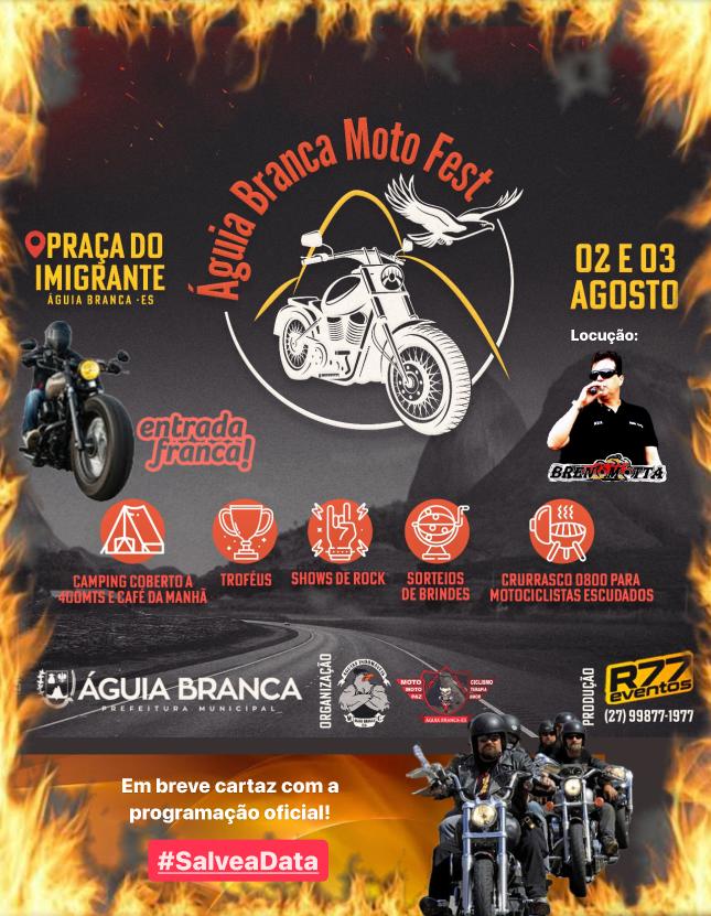 Com a presença confirmada de motociclistas vindos de diversas partes do país, o evento promete unir entusiastas em torno de uma paixão comum: a estrada. E não é só isso, o Águia Branca Moto Fest não é apenas sobre motos, é sobre comunidade, música e o espírito de aventura que permeia cada curva e cada reta.